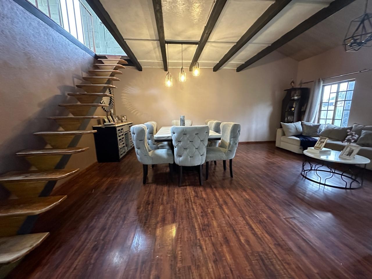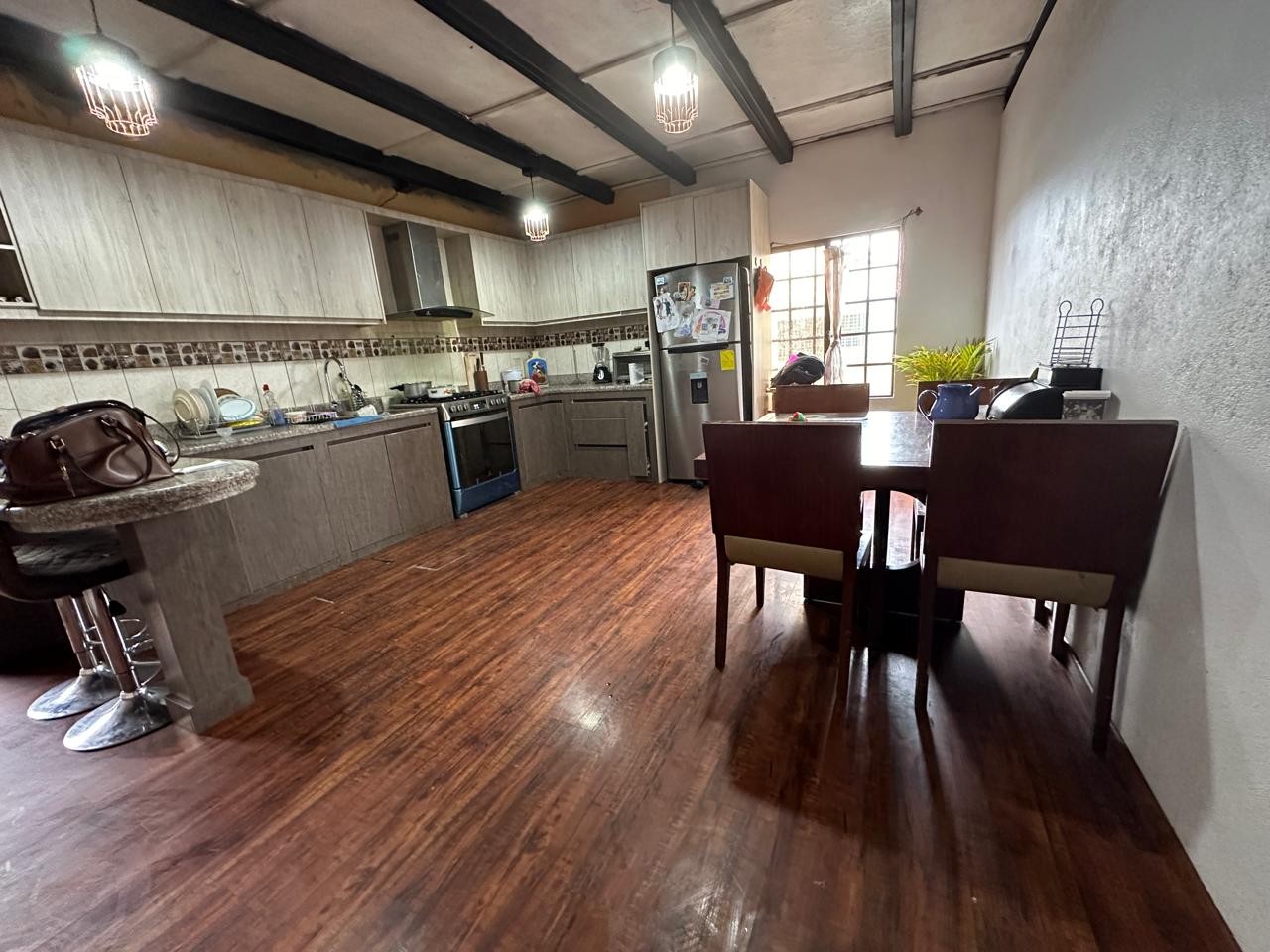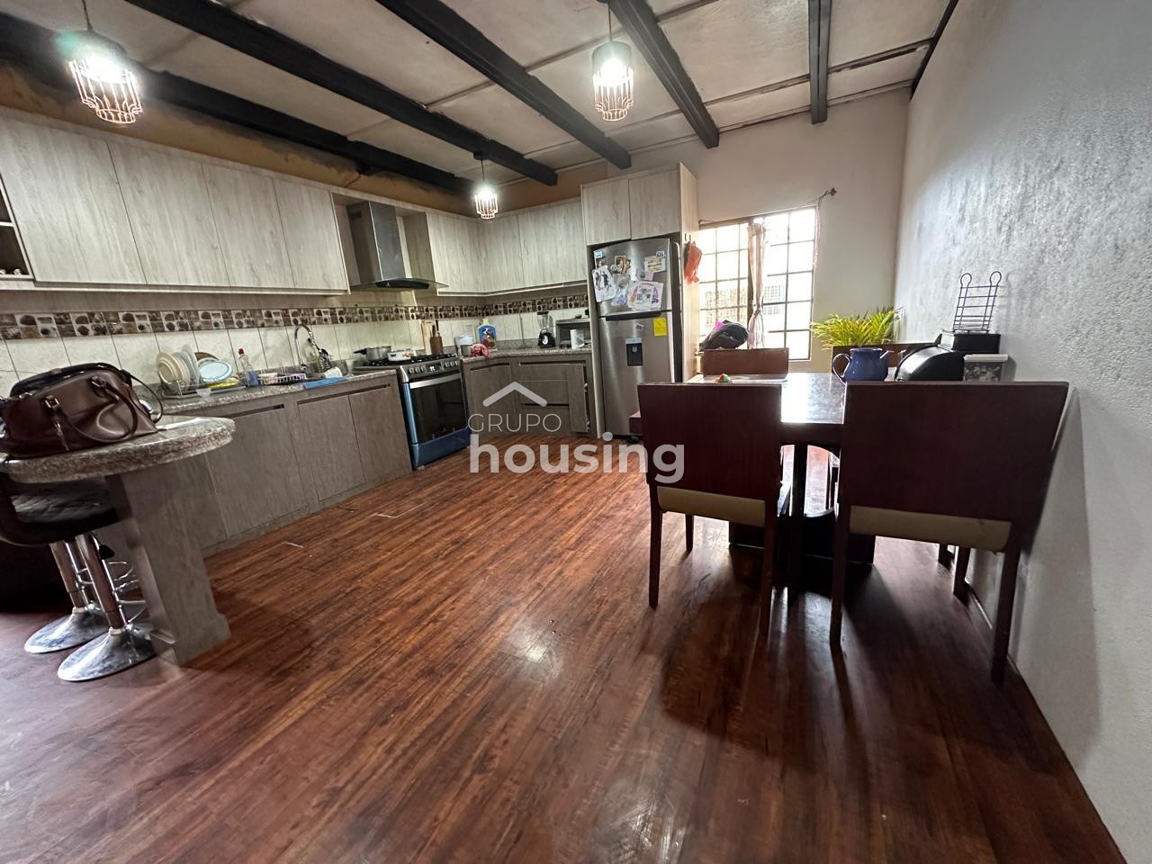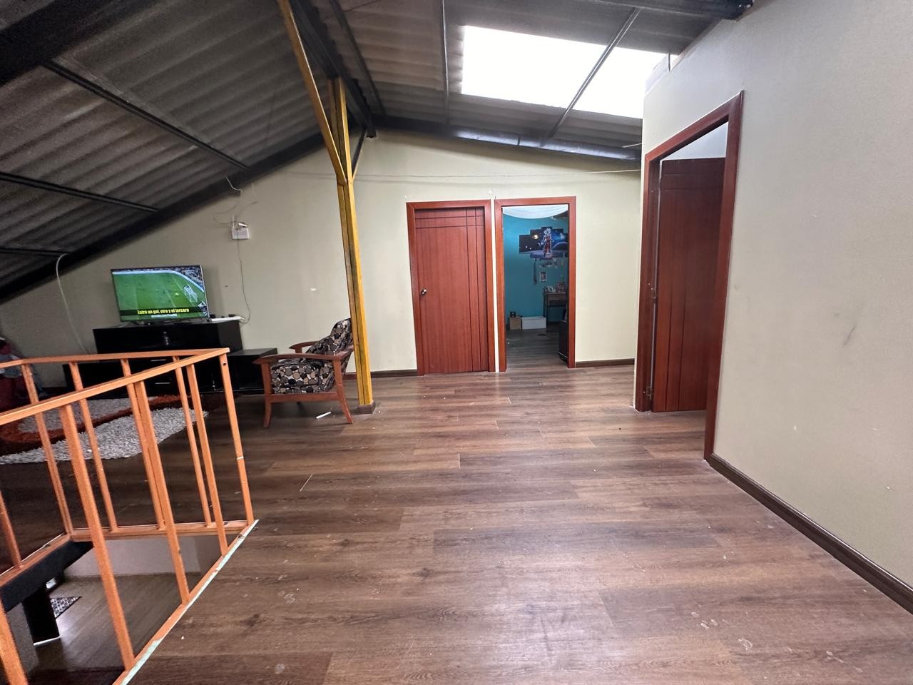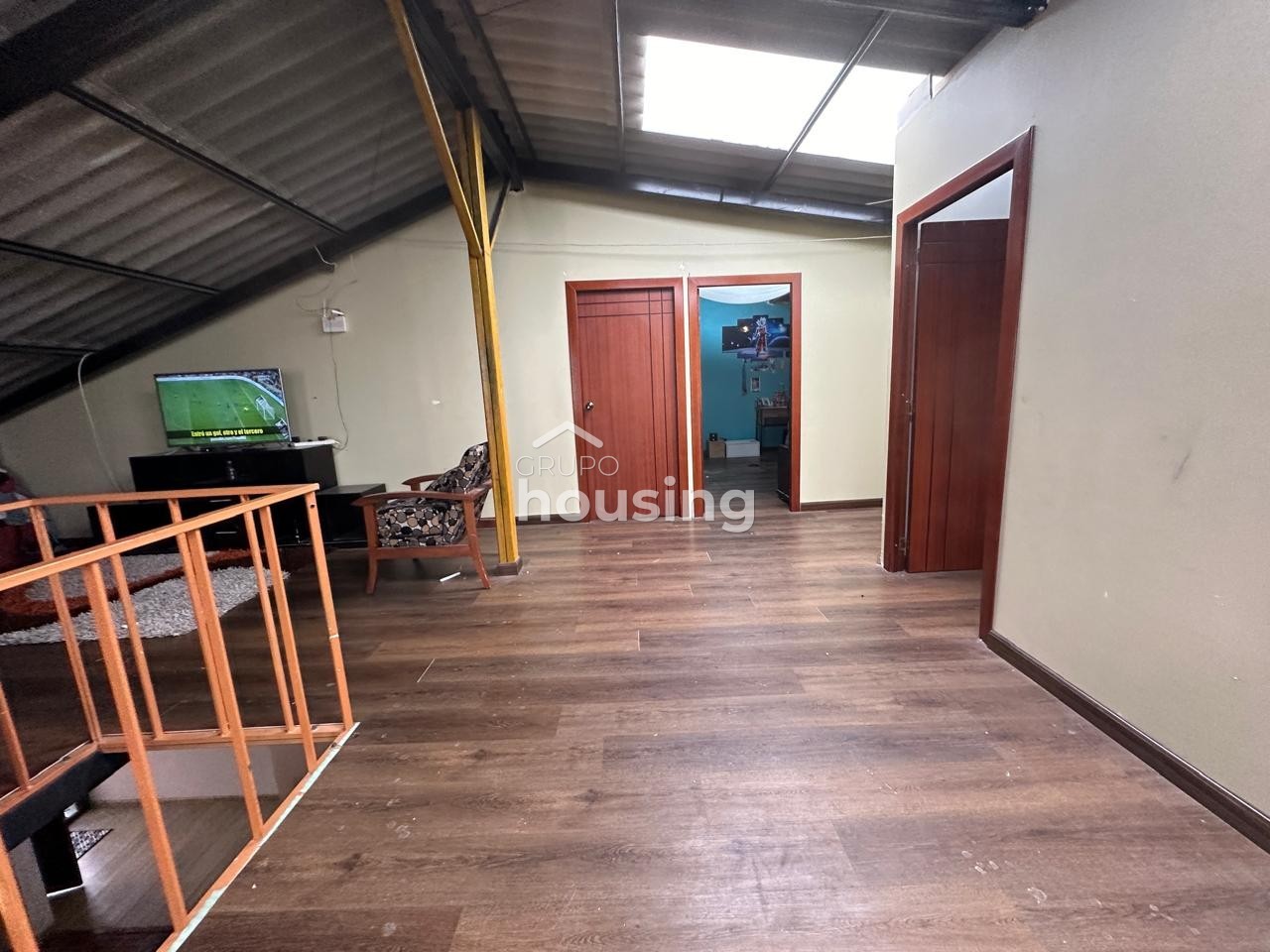 Casa unifamiliar en venta, misma que tiene 1 piso más buhardilla, emplazada en un terreno de ubicación medianero. En la planta baja tenemos sala, comedor, cocina, baño social, dormitorio principal con baño privado, 2 dormitorios que comparten 1 baño completo. En la buhardilla tenemos un área social central y área de juegos, además de 3 dormitorios con baño completo compartido. Cuenta con dos galpones (nave industrial).